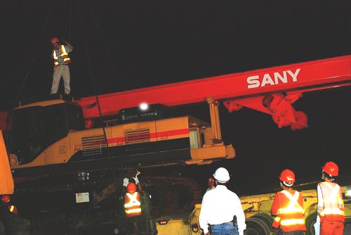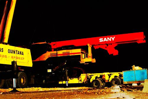 首台大型装备——旋挖钻机已于外地时间11月2日晚8点30分抵达巴巴奥约河大桥项目部,首批物资装备所有运往工区需要二十多天的时间。为了做好装备运输事情,项目部提前做好安排,在存放的园地提前画好分区,并且安排职员举行三班倒二十四小时一直坚守在第一现场,清点物资装备。