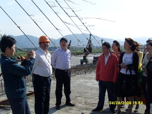 •     姚东大桥作为余姚市政府的重点工程之一,它的建设一直以来倍受外地各级政府部分的重视和体贴。429日下昼,余姚市副市长诸晓蓓一行在项目司理苏华荣的陪同下视察了姚东大桥施工现场。