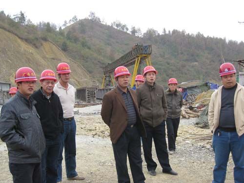 集团公司党委副书记张友坐(中)在天乐5标施工现场指导事情