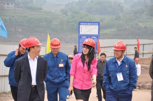 5月19日下昼,泸州市市委书记朱以庄在业主单位总司理张飞雪陪同下到泸渝2标视察工程建设事情。