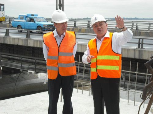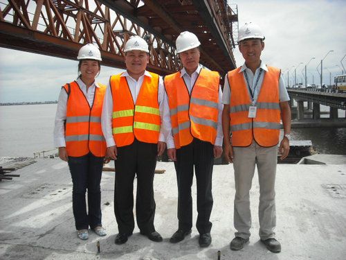 总公司副总司理、巴巴奥约河大桥项目司理凌忠代表公司全体员工对大使的到来体现热烈接待,对大使一直以来对项目的支持和体贴体现谢谢,希望大使一如既往的支持和关注项目的建设;在施工现场凌总向蔡大使详细先容了现在项目的进度情形、装备、职员投入情形以及下一步施工的重点。听完先容后,大使对项目现在的情形很知足,看到忙碌的施工现场时,大使脸上绽放出笑容,大使说:“随着国家向导人一直的到访,世博会的乐成举行,一些重大贷款子目的落实,中厄双方的关系抵达建交以来的最好时期,大使馆会尽一切能力,想方想法为我们华人华侨、中国公司排忧解难,在巴巴奥约河大桥项目的延期和索赔问题上,大使馆一定高度重视,全力协调落实。”