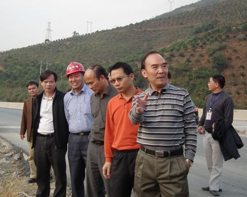 黄书记指出,现在广西高速公路交通事业蓬勃生长时期,隆百高速公路是区内纵横高速网的主要一支,因此,隆百高速年底通车被付与主要的社会意义和经济效益;隆百高速公路是广西以致天下首次使用橡胶沥青混凝土路面大规模施工的高速公路,因此路面建设铺筑需要各方单位系统掌握施工要点、总结工艺手艺,积累施工履历,在包管质量、清静的条件下,全力推进工程施工进度,确保隆百高速路于