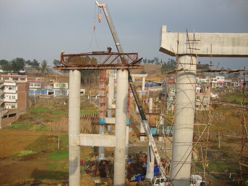 归化大桥4#墩正在举行盖梁钢筋绑扎