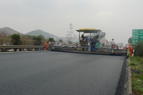 摊铺机正在摊铺SMA-13沥青路面上面层试验路